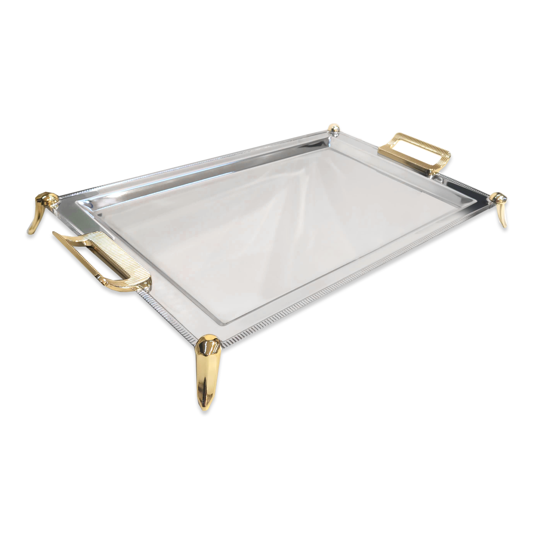 Rectangular Footed Tiamo Silver Tray with Gold Rectangular Engraved Handles