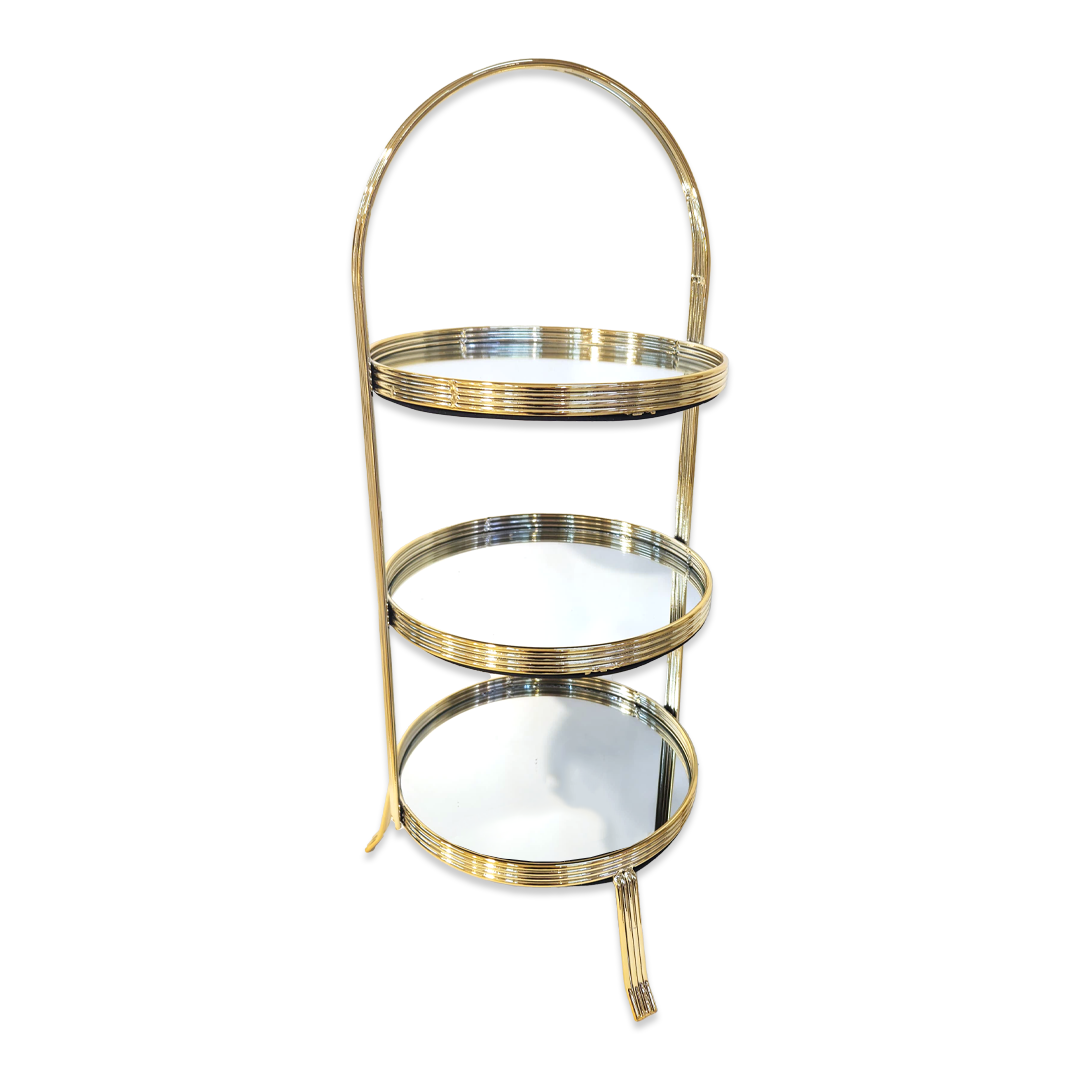 Features a round, 3-tier structure with a swirl-engraved metal frame in a refined gold finish.