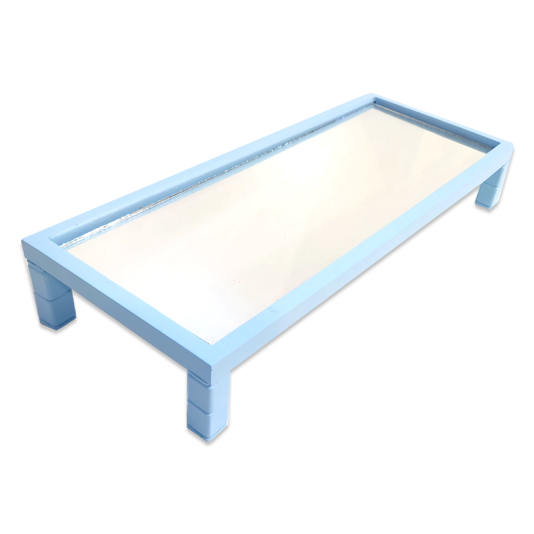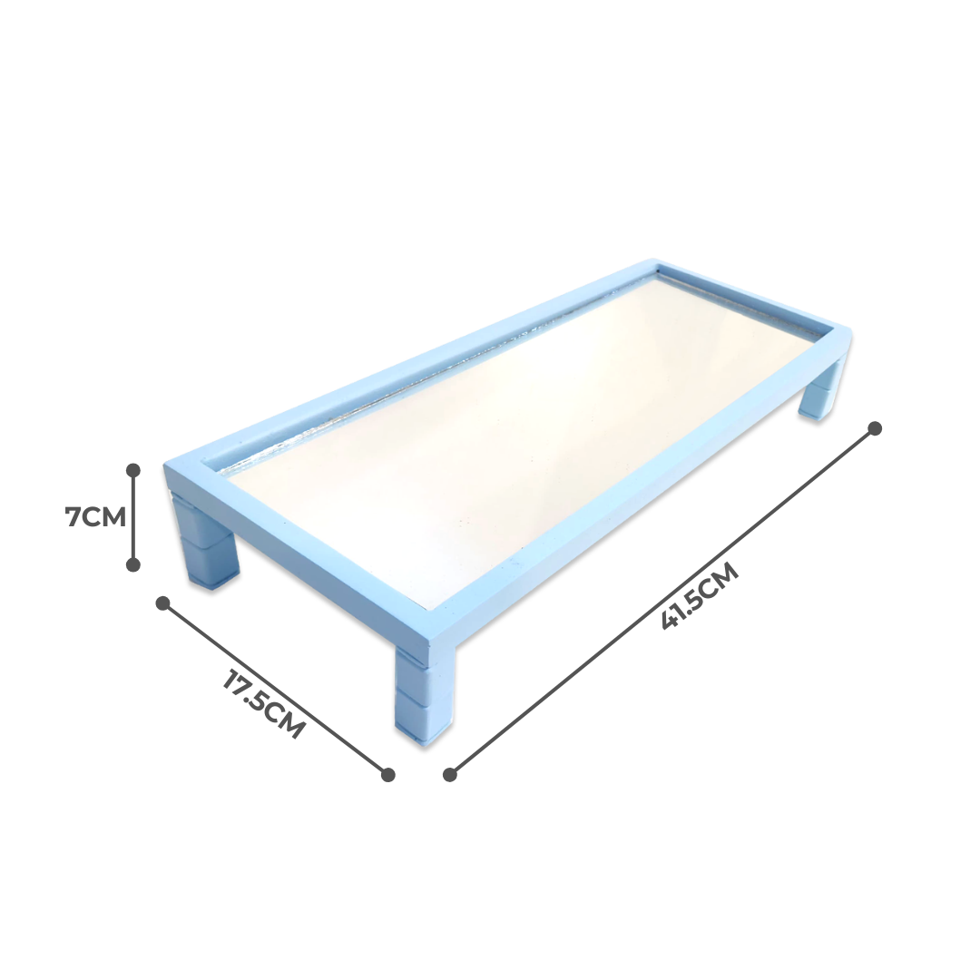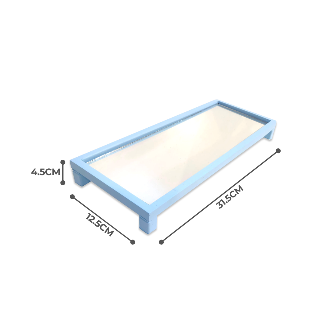 • Sleek and minimalist rectangular tray in a soft blue hue, perfect for adding a touch of sophistication to any space.