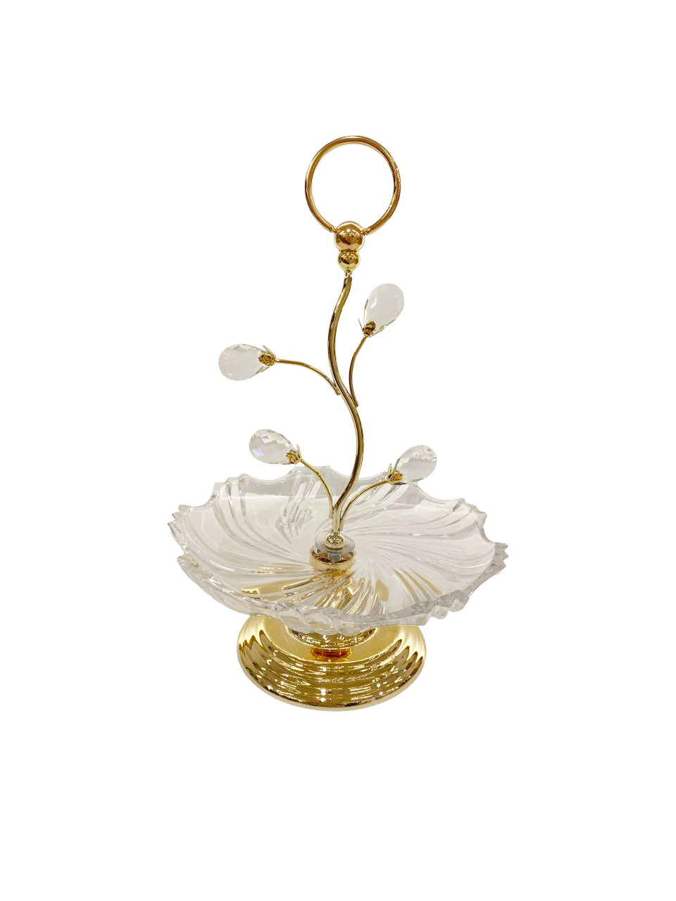 Glass plate with gold and crystal branch holder