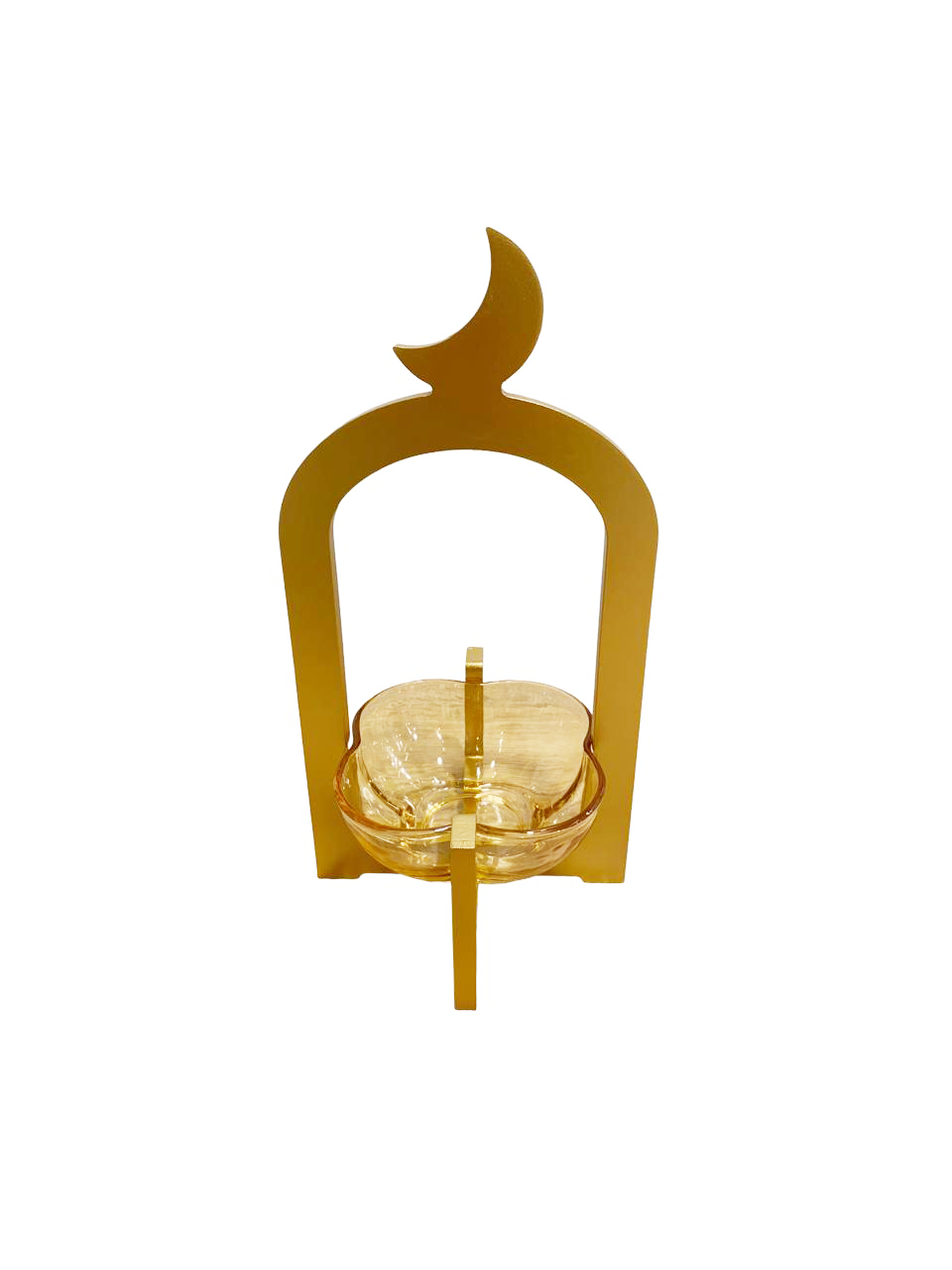 Features a beautifully crafted gold stand with Glass bowl, each elegantly accented with a decorative tassel, perfect for adding a luxurious touch to your Ramadan celebrations.