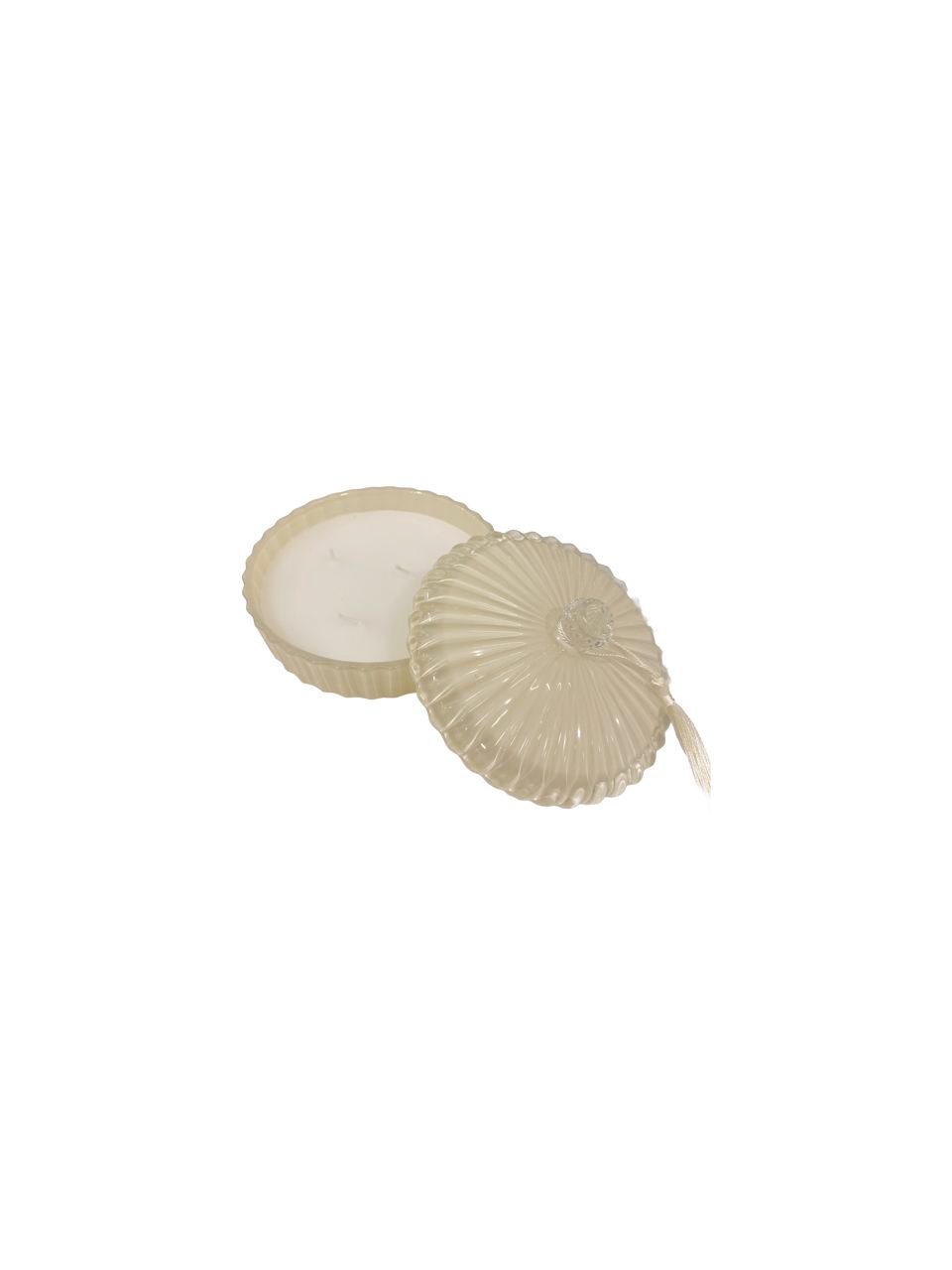 Ivory Wide round ribbed candle souvenir