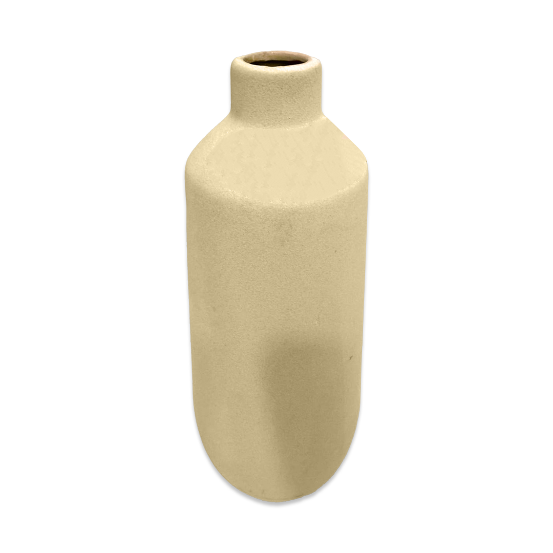 Long Bottle Shape Beige Ceramic Vase