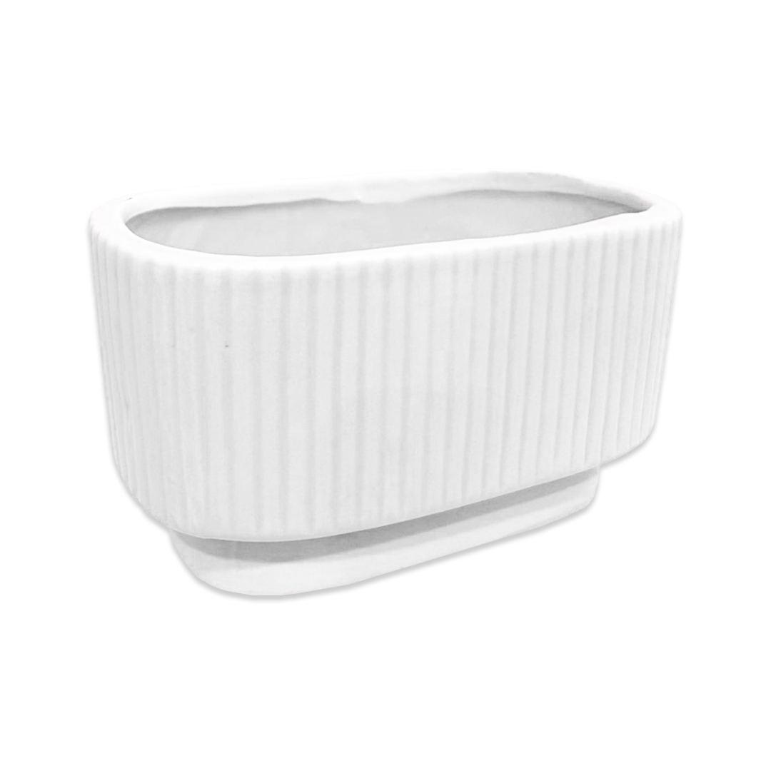 Oval White Stripped Ceramic Vase