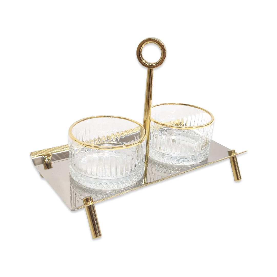 Rectangular Tiamo Gold Tray with 2 Nuts Bowl