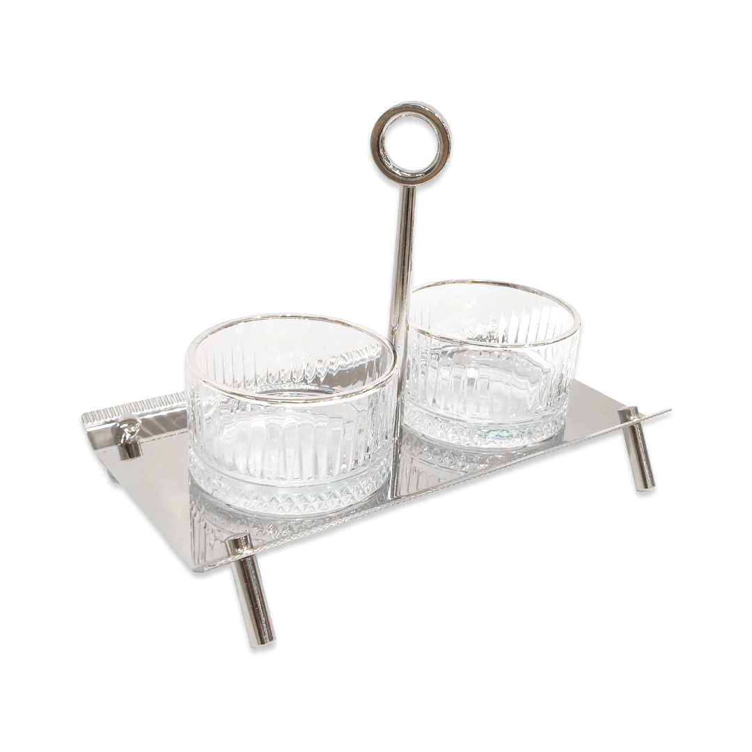 Includes a sleek rectangular silver tray paired with two matching stainless-steel bowls perfect for serving nuts, sweets, dried fruits, or condiments.
