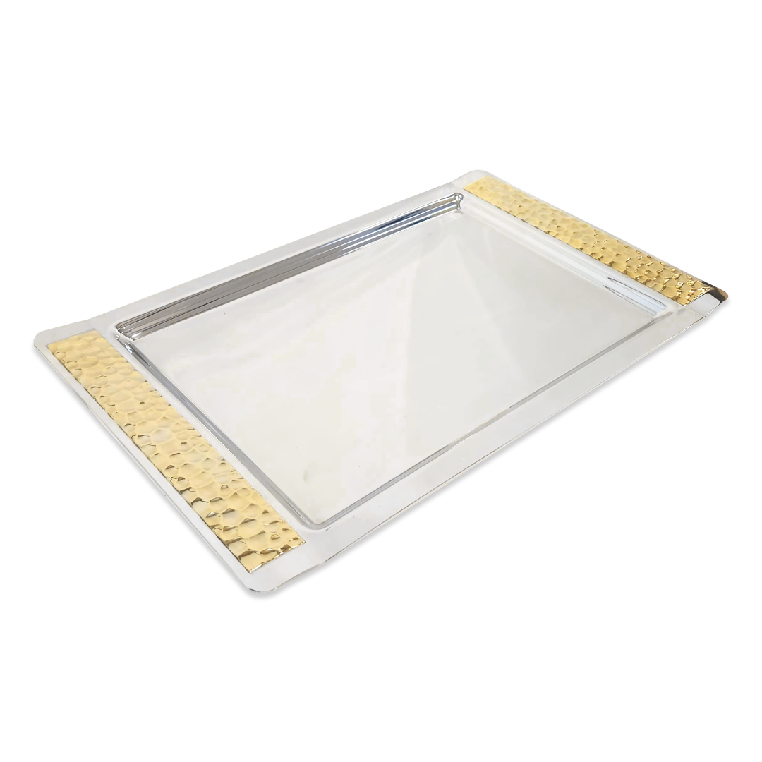 Rectangular Tiamo Silver Tray with Gold Pebbles Handles