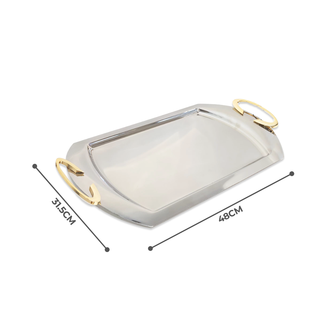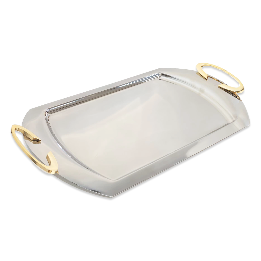 Rectangular Tiamo Silver Tray with Round S Shape Gold Handles