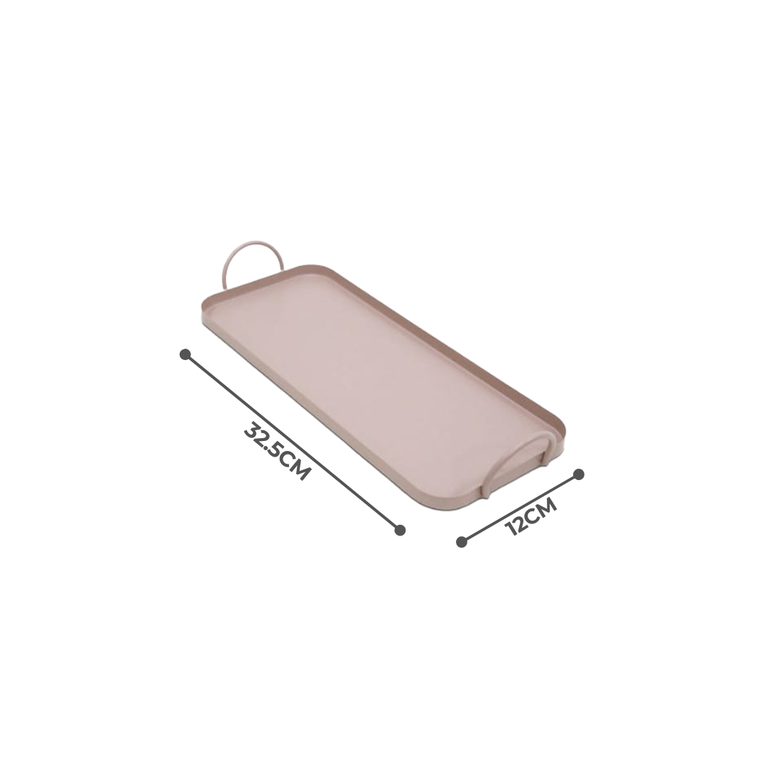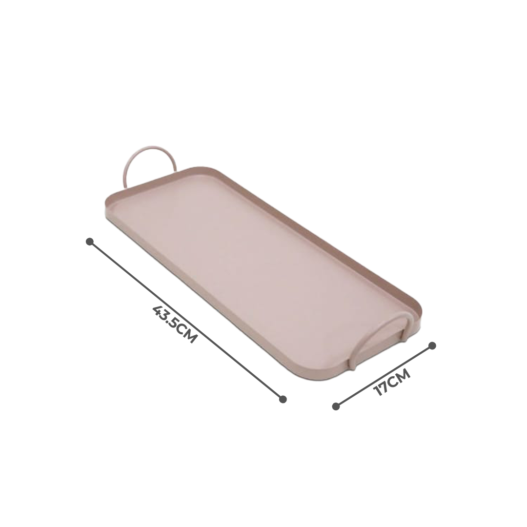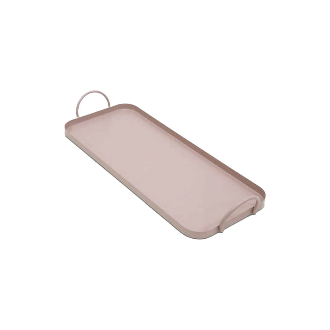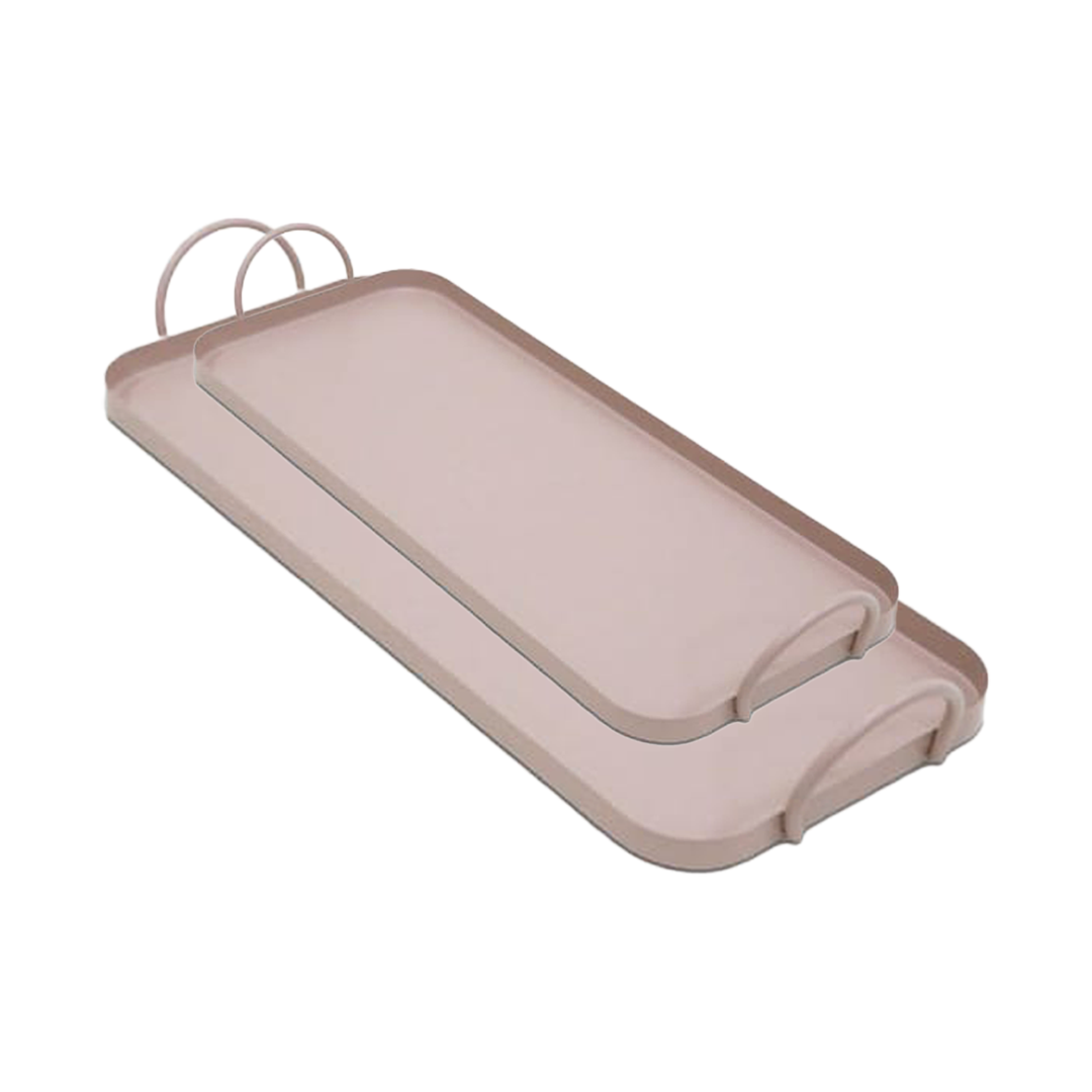 Set of 2 Pink Dome Handle Rectangular Metal Tray