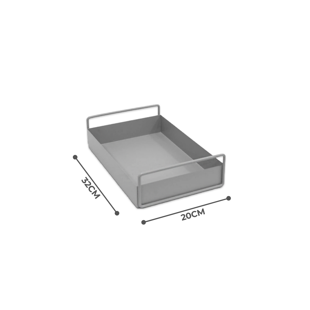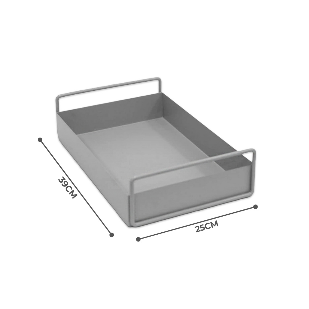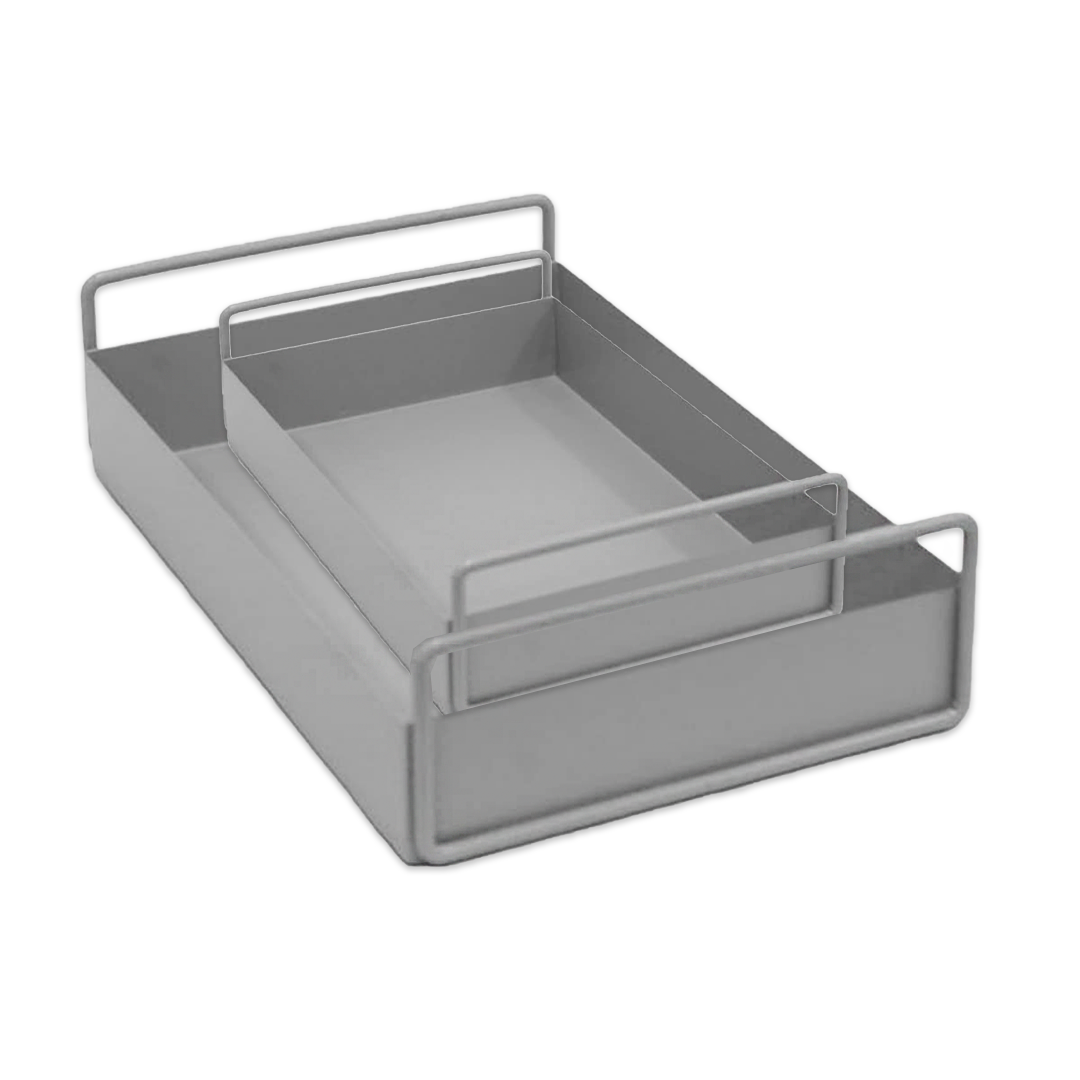 This set of two rectangular trays features a luxurious grey finish, paired with stylish rod handles for a contemporary and chic look.
