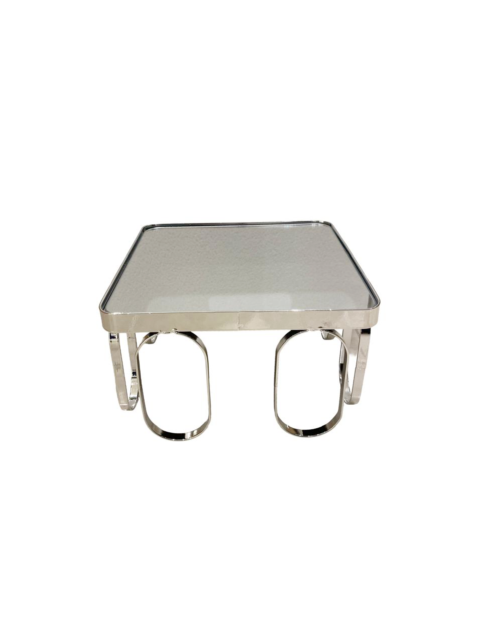 Set of 3 silver rectangular mirror trays with tall round quantity